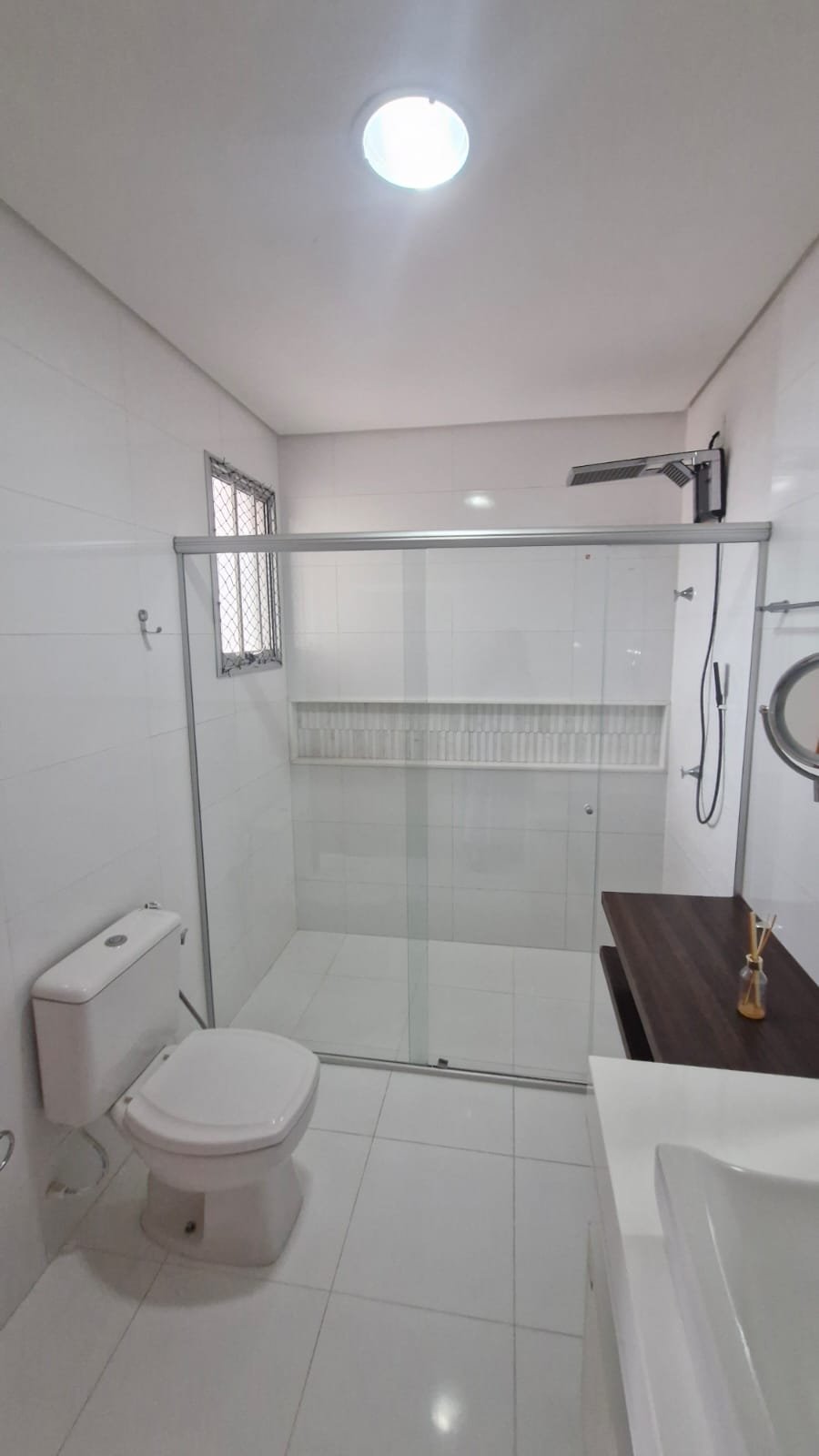 Lavabo, corredor com armário