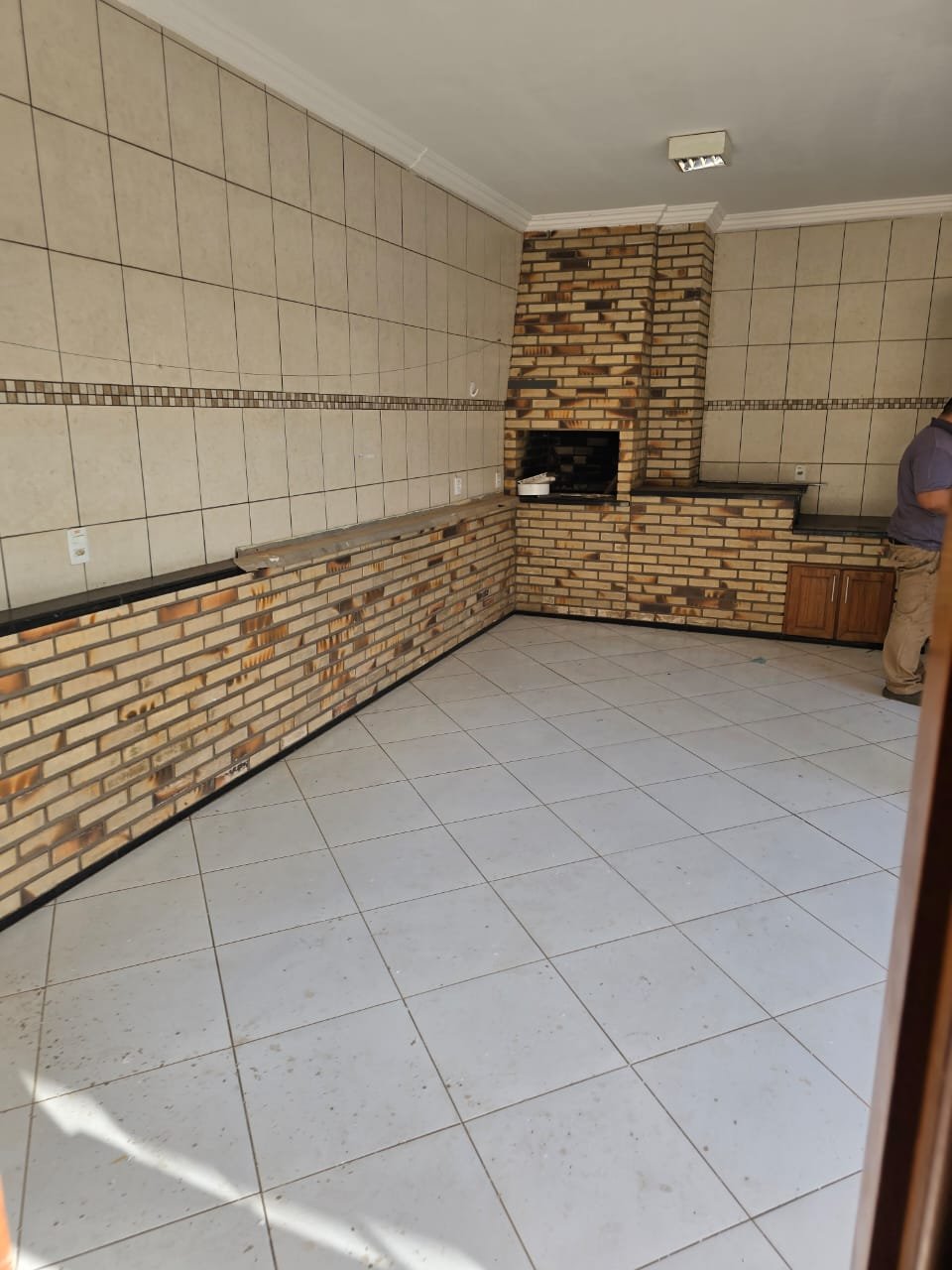 Área de lazer completa com churrasqueira, forno e despensa