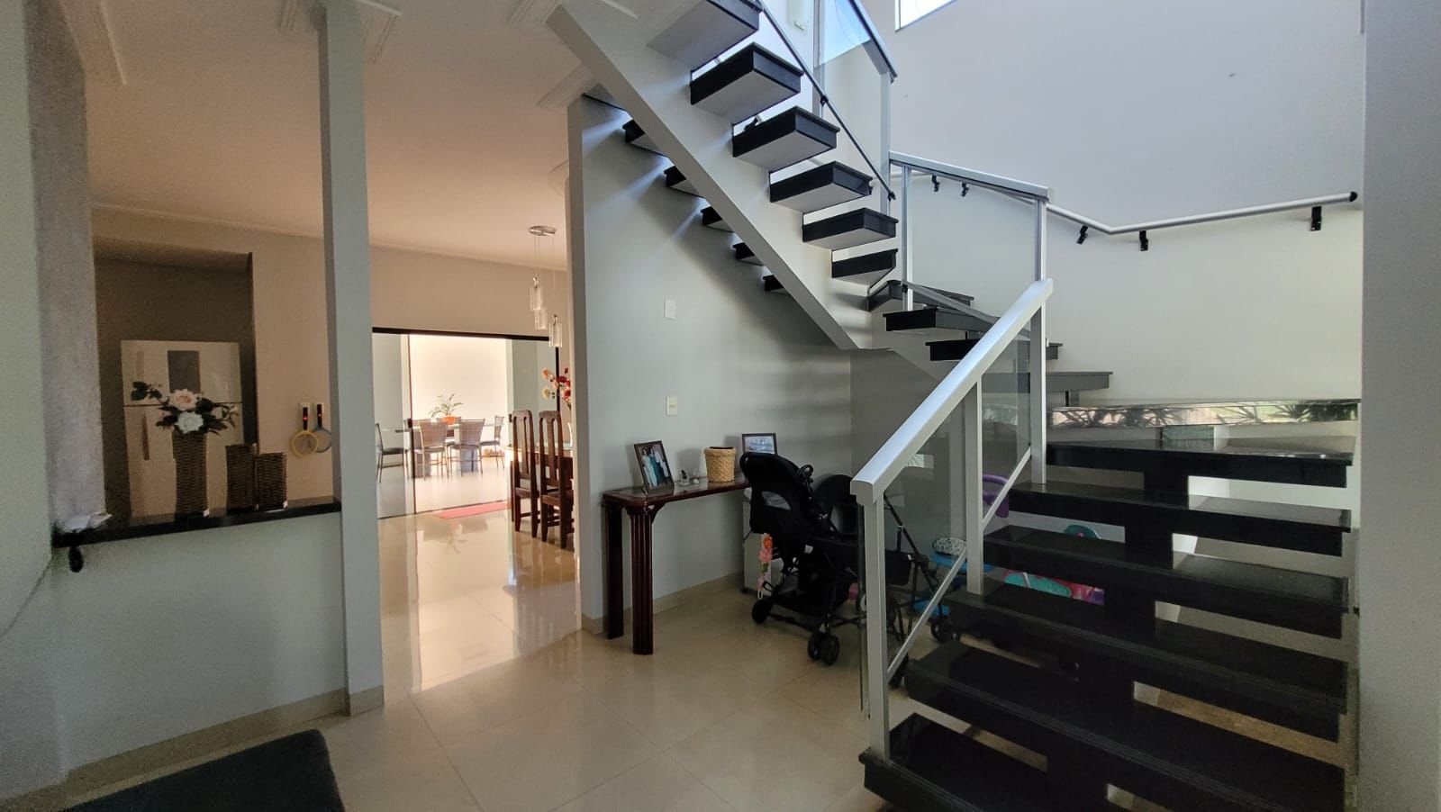 - ESCADA COM CORRIMÃO EM AÇO DEGRAUS EM GRANITO